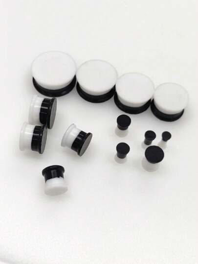 OKAYDOKY 2pcs Black & White Two-Tone Solid Cylindrical Silicone Ear Plug Set, Suitable For Daily Wear - Black and White - View 6