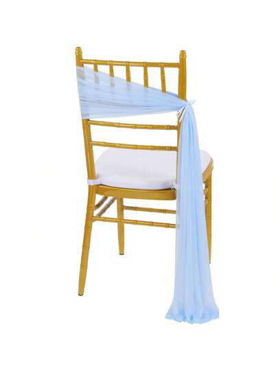 2pcs Blue Chiffon Table Runner, Romantic Wedding Decor For Bridal Shower, Ceremony, Banquet, Celebration, Party Chair Back Decoration - Multicolor - View 17