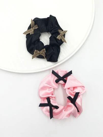 2pcs Bow Decor Scrunchie - Multicolor - View 1