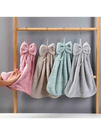 2pcs Bowknot Super Absorbent Hanging Hand Towels - Quick Dry Multi-Purpose Kitchen & Bathroom Cleaning Cloths, Modern Polyester Blend - Light Grey - View 7