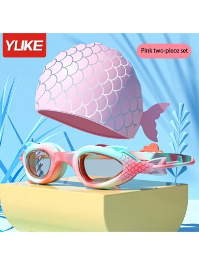 2pcs Children Swimming Goggles & Swimming Cap Set, Anti-Fog, Small Frame, Waterproof, Swimming Training Diving Gear - Pink - View 1