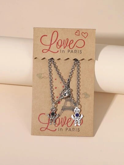 2pcs Couple Astronaut Pendant Necklace - Silver - View 1