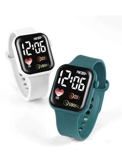 2pcs Couple Square Dial Electronic Watch Set - Multicolor - View 1