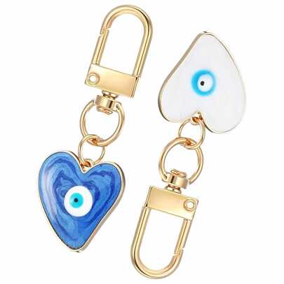 2pcs Devil's Eye Metal Keychain Set, Heart Shaped Fashion Devil's Eye Sweetheart Keychain, Suitable For Car Key Finder, Keyring, Wallet, Handbag, Pendant Decoration, Thoughtful Gift For Family, Friends, Couples On Valentine's Day, Anniversary, Birthday, Unisex (Navy Blue + White) - Blue Eyes Keychain - View 7