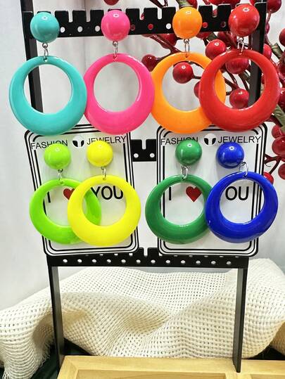 2pcs Extra Long Exaggerated Acrylic Candy-Color Earrings, Minimalist Style Hollow Vintage Dangle Earrings - Hollow Exaggerated Earrings - View 16