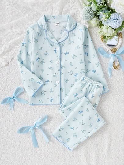 2pcs Girls Spring/Autumn Comfortable & Fashionable Cardigan Long Sleeve Top And Pants Homewear Set - Baby Blue - View 1