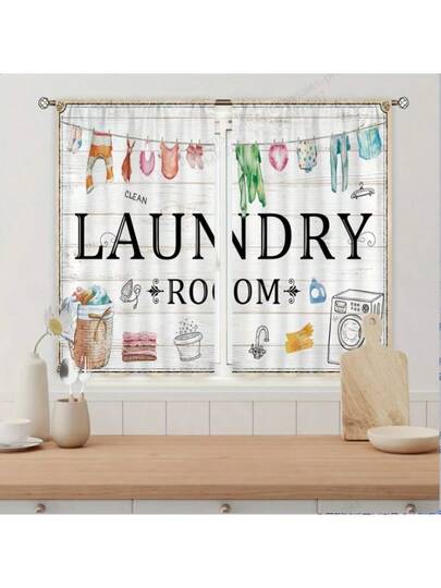 2pcs High Definition Digital Letter Print Decorative Curtains, Made Of Polyester, Semi-Transparent For Privacy Protection, Fade-Resistant, Hand/Machine Washable, Rod Pocket Hanging, Suitable For Bedroom And Living Room Decor - Multicolor - View 1