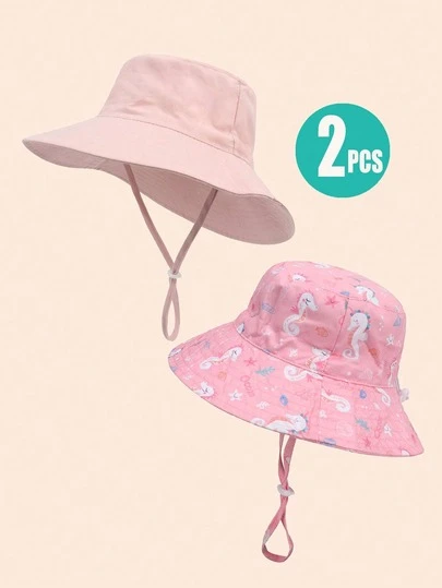 2pcs Kids Sun Hat, Breathable Beach Cap For Boys & Girls, Morans Color Bucket Hat, Seahorse Decor - Multicolor - View 1