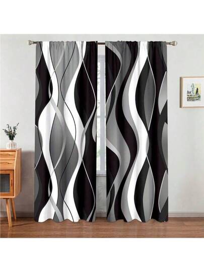 2pcs Modern Abstract Art Line Design Curtains - Rod Pocket Design, Balances Privacy, Easy Installation, Suitable For Bedroom, Living Room, Bathroom And Other Daily Decor, Machine Washable, Digital Printing, 100% Polyester, 90gsm - Multicolor - View 1