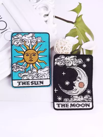 2pcs Moon & Sun Embroidery Iron On Patch - Multicolor - View 1