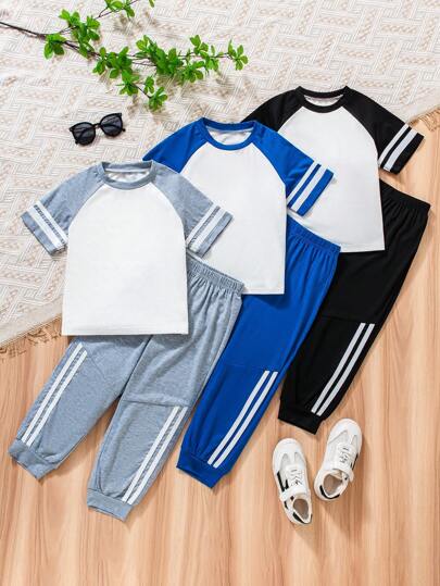 2pcs/Set Toddler Boys' Striped Round Neck Raglan Sleeve Short Sleeve T-Shirt And Pants Set - Multicolor - View 1