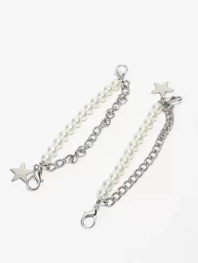 2pcs Star & Faux Pearl Decor Chain Shoe Decoration - Silver - View 1