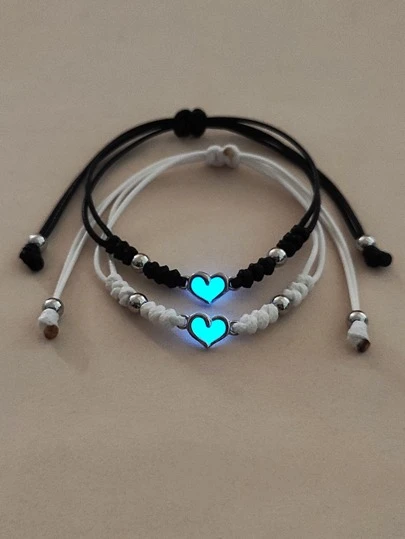 ATLVXJL 2pcs/set Couple Glow In The Dark Heart Decor Bracelet - Multicolor - View 1