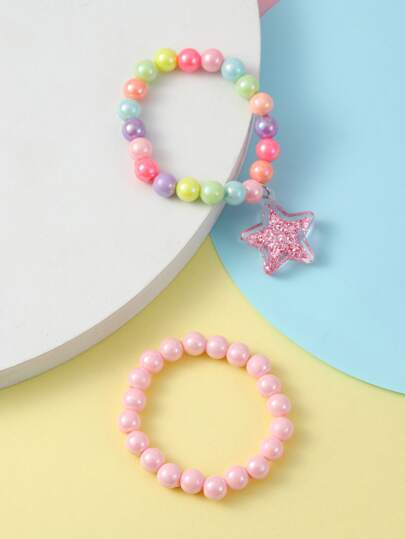 2pcs/set Girls Star Decor Beaded Bracelet - Multicolor - View 1