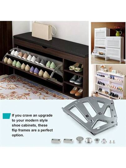 2pcs/Box Shoe Rack Accessories - One-Piece Design, Smooth Edges, Protective Film, Multi-Layer Stainless Steel Flip Shelves, Shoe Cabinet Flip Down Racks - Multicolor - View 1