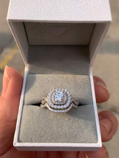AIHUASI Luxury 2pcs/Set Certified 925 Sterling Silver With Rhodium Plated Hypoallergenic Wedding Rings Set For Women Center Stone 6*6mm 0.8 Carat Round Cut Dazzling AAAAA Cubic Zirconia Fantasy Bridal Jewelry Gift - Silver - View 10