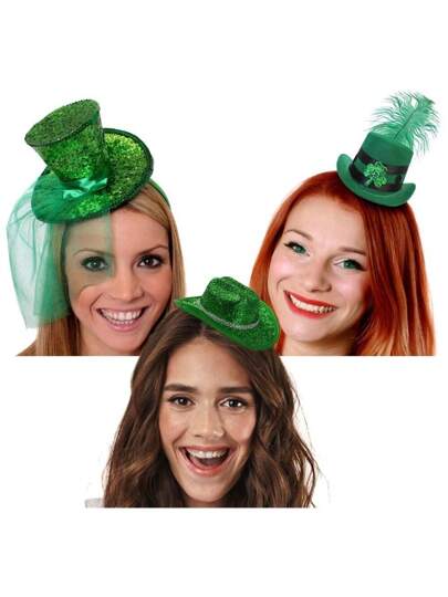 3 Pack St. Patricks Day Mini Fascinator Hats – Irish Party & Fancy Dress Accessories - Green - View 1