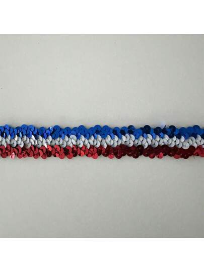 3 Rows Elastic Sequin Apparel Accessories, 3-Color Sequin Trimming, DIY Sequin Strips - Blue, White and Red - View 4