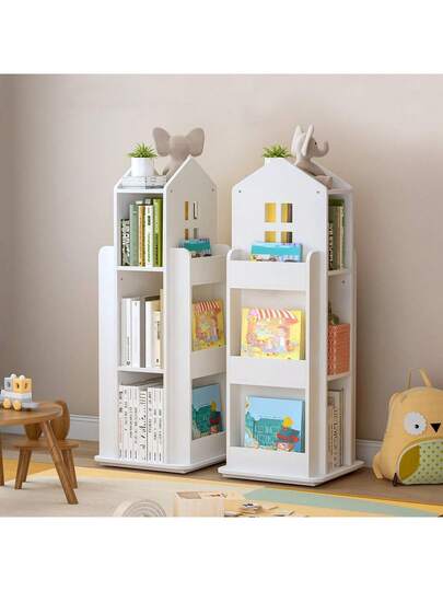 3-Tier Rotary Bookshelf, Bookcases 360° Rotating Storage Display Rack Floor Standing Swivel Bookcase For Bedroom Living Room Study Office White - White - View 1