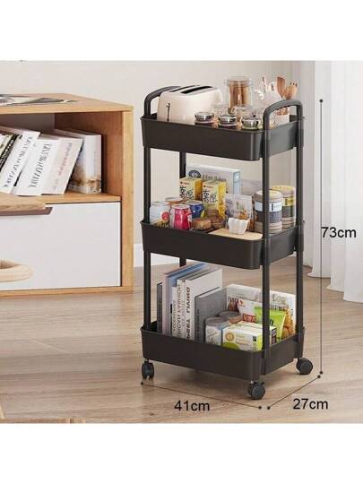 3 Tier Rolling Cart With Wheels Utility Storage Cart With Handle And Lo... - Black - View 1