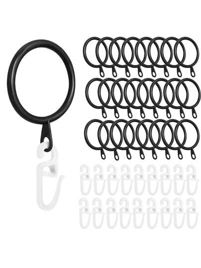 30mm/1.18" Black & Silver Curtain Rings, Plastic Curtain Hooks, Metal Curtain Rings, Hanging Rings And Curtain Hooks, Suitable For Window Rods, Shower Curtain Hooks Christmas Decor - Black - View 1