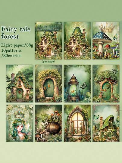 30pcs/Book Material Paper Forest Series Vintage Forest Theme Tearable Scrapbook Foundation Paper - Multicolor - View 1