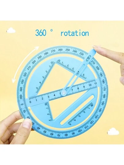 360 Degree Protractor With Wave Ruler, Straight Ruler, Triangular Ruler, Ideal Educational Tool For Elementary Students - Pink - View 8