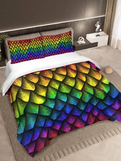 3D Dragon Scales Pattern Bedding Set Super Soft Neon Purple Green Duvet Cover Set For All Ages - Green - View 1