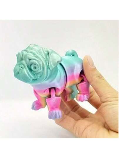3D Printed Movable Joint Pug Dog Figurine, Creative Cute Pet Desktop Decor, Ornament Gift Model - Multicolor - View 1