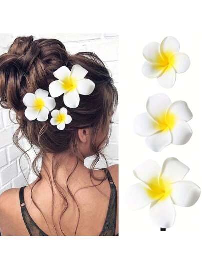 3pcs Beach Beach Simulation Flower Frangeria Hairpin Hair Clips Claw Clips Hair Claws Hair Slide Hair Barrettes, School Stuff, Hair Accessories, Head Accessories, Hair Accessories For Women - Multicolor - View 1