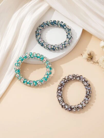 3pcs Floral Pattern Coil Wire Hair Tie - Multicolor - View 1