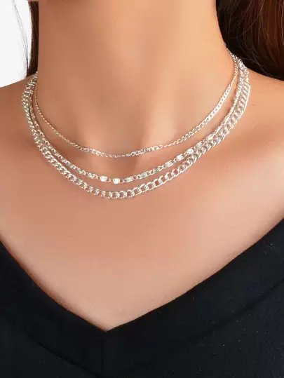 3pcs Minimalist Chain Necklace - Silver - View 1