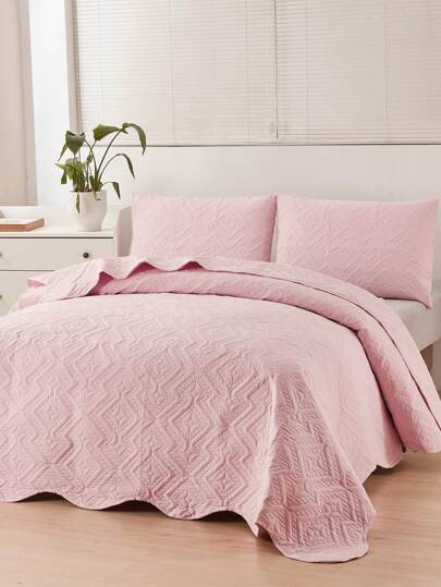 3pcs Pink Geometric Design Bedding Set Include 1pc Duvet Cover And 2pcs Pillowcases, Modern Style Polyester Woven Embroidery Bedding Set For Bedroom Home Use - Pink - View 1