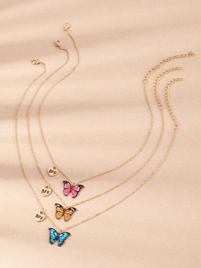 3pcs/Set Colorful Butterfly Necklaces, Suitable For Daily Decoration