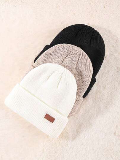 3pcs/Set Plain Color Women's Knitted Hat With Pom-Pom Winter Fall - Three Piece Set - View 1