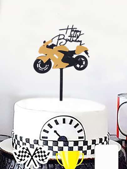 3pcs Super Cool Motorcycle & Car Birthday Cake Toppers - Multicolor - View 1