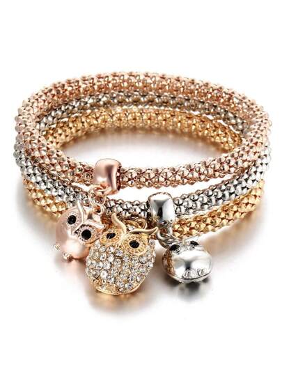 3pcs Women Assorted Color Alloy Bracelets Set, Gift Idea - Owl Set - View 3