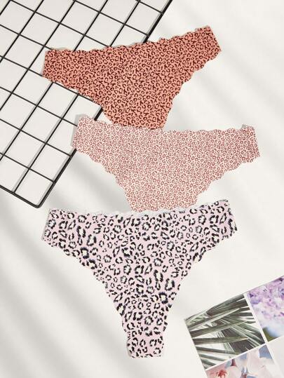 3pcs Women Leopard Print Seamless Thong Panties - Multicolor - View 1
