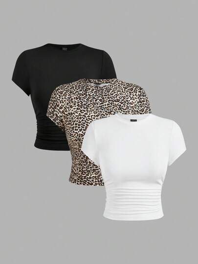 Muchica 3pcs/Set Ladies' Pleated Short Sleeve T-Shirt - Multicolor - View 1