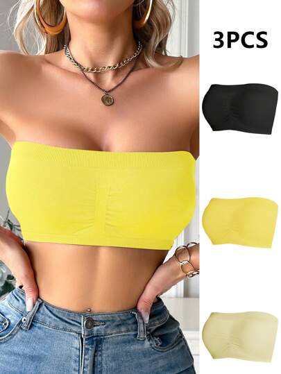 SHEIN 3pcs/Set Women Solid Color Bandeau Casual Bra Set Without Padding For Everyday Wear Casual - Multicolor - View 1