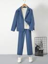 SHEIN 2pcs/Set Tween Boy Casual Sports Graphic Contrast Color Hoodie Jacket And Pants Set, Suitable For Commuting, School, Casual, Travel, Sports, Autumn/Winter