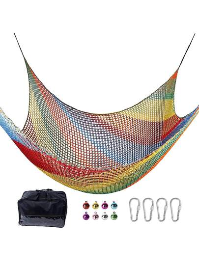 3x3m Garden Climbing Net With Storage Bag, 8 Bells & 4 Carabiners - Multicolor - View 1