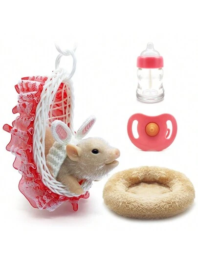 4.7 Inches Silicone Piglet With Basket, Soft Mini Realistic Piglet Include Amazing Piglet Accessories For Kids Boy Girl Birthday - Multicolor - View 1