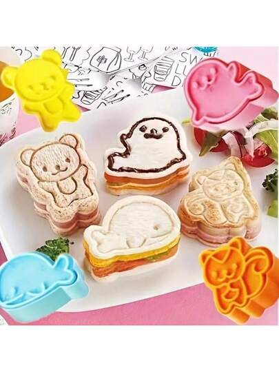 4-Piece Cartoon Mini Sandwich Cutters Set - Bakeware For Restaurant And Home Use With Cookie Cutters, Bento Boxes, Lunch Prep & Bread Decorating, Bread Cutter, And Sealer - Perfect For Eid Al-Adha Celebrations - Multicolor - View 1
