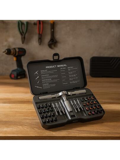 40-In-1 Gearless Ratchet Screwdriver Set – Magnetic Handle, Detachable T-Handle, Precision Bits For Bicycle, Electronics DIY Repair - Black - View 1