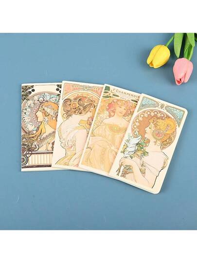48K Mucha Style Blank Notebook, Student Sketchbook, Drawing Pad, High-Grade Blank Ivory Cowhide Notebook, Notebook, Sewn Notebook, 48K Romantic Unbound Notebook - Multicolor - View 1
