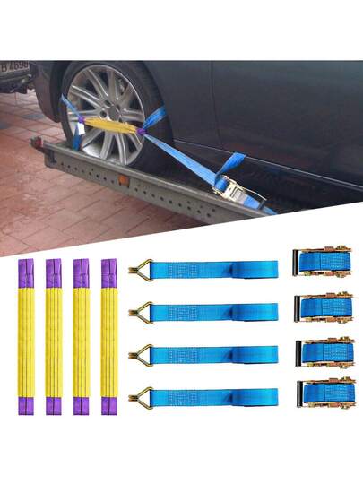 4X Blue - Car Trailer Soft Link Tie Down Transporter Heavy Duty Ratchet Straps - 12PCS - View 1
