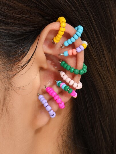 4pairs Glass Bead Decor Ear Cuffs - Multicolor - View 5