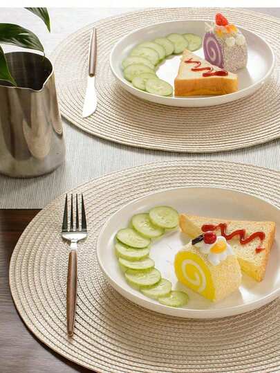 4pcs/6pcs Set 15-Inch Woven Round Placemats, Washable Non-Slip Dinner Table Mats For Home Gatherings, Weddings, Parties (Ivory White) - Ivory - View 1