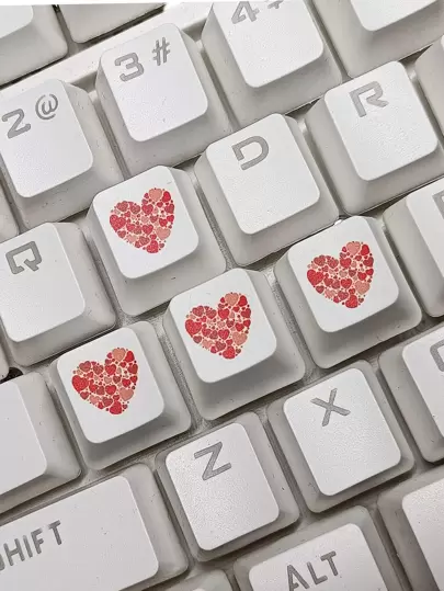 4pcs Heart Print Mechanical Keyboard Key Cap - Multicolor - View 1